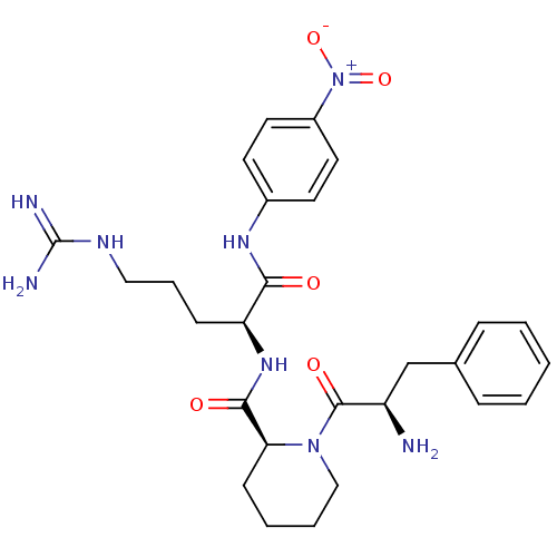 H-D-phenylalanyl-L-pipecolyl-L-arginine-p-nitroaniline dihydrochloride | (2S)-2-{[(2S)-1-[(2R)-2-amino-3-phenylpropanoyl]piperidin-2-yl]formamido}-5-carbamimidamido-N-(4-nitrophenyl)pentanamide | D-Phe-Pip-Arg-pNA | N-(4-nitrophenyl)-N2-{[(2S)-1-D-phenylalanylpiperidin-2-yl]carbonyl}-L-argininamide | Chromogenic Substrate S-2238